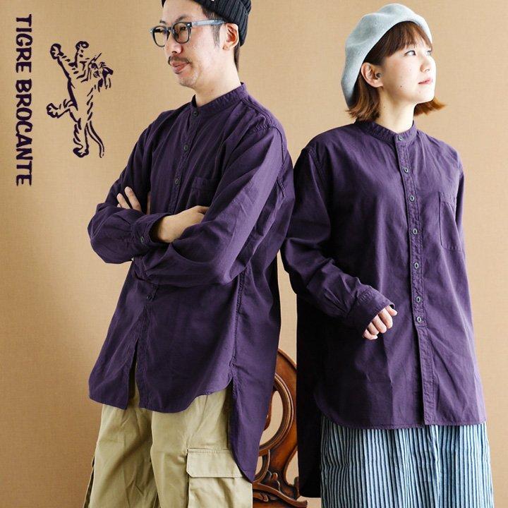 シャツ 長袖 ロング丈 バンドカラー 綾織り ストレッチ 重ね着 ディープパープル 紫 日本製 コットン 綿 メンズ レディース Tigre Brocante Paty 通販 Paypayモール